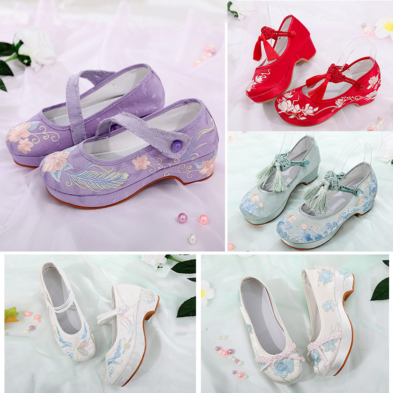 在庫一掃処理漢服靴少女時代刺繍靴中国風老北京児童布靴古風演出靴