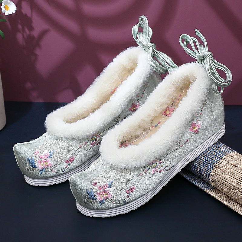 南雀玉蝶は風に向かって冬の漢服靴とベルベットの首を長くして古着靴の女性刺繍靴の古風が高くなった布靴の女性