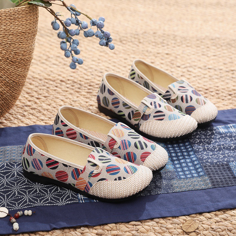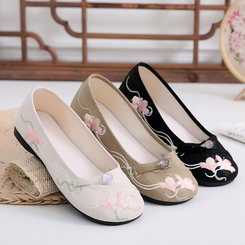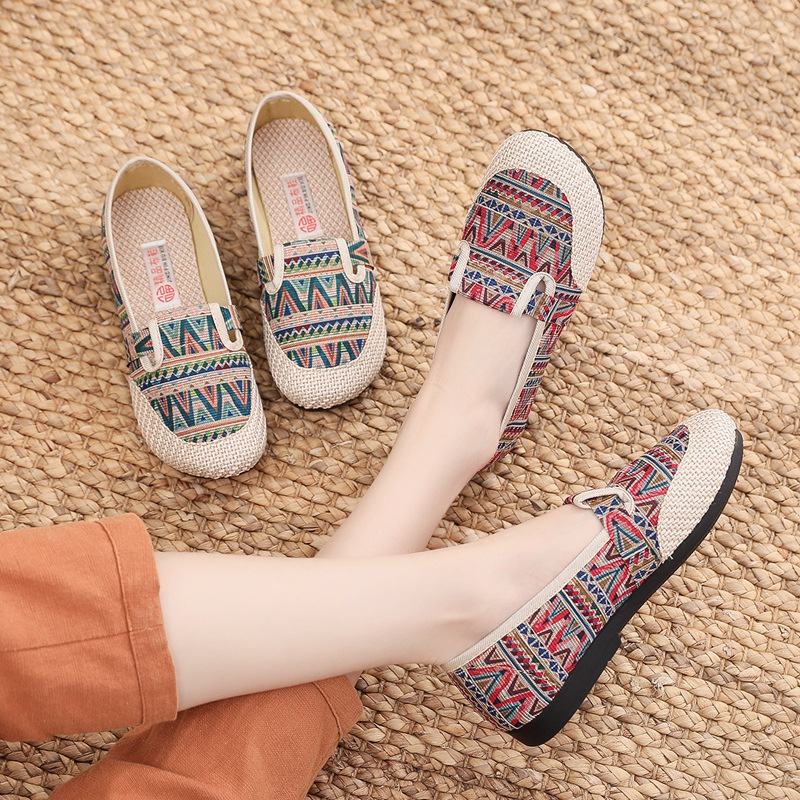 在庫一掃京布靴女性怠け者靴平底靴レトロ民族風ダンスソフト底女性靴中高齢母靴