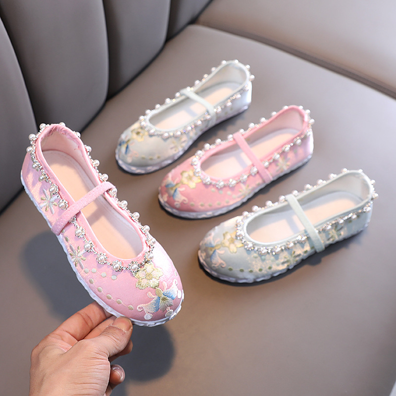 碧海漢服靴少女古風古着平底刺繍靴子供中国風古い北京布靴ダンス靴