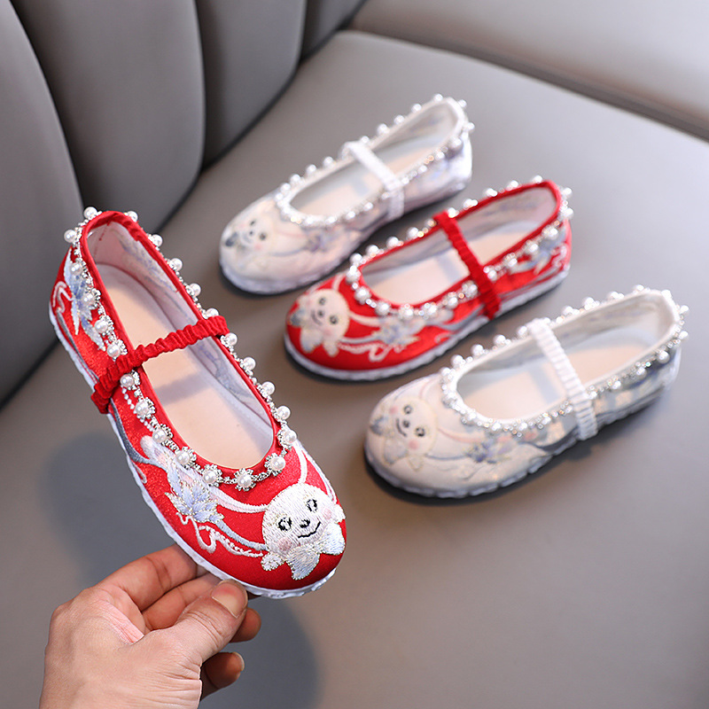 在庫一掃処理刺繍靴少女古風ドリル漢服靴児童老北京布靴学生表演出靴