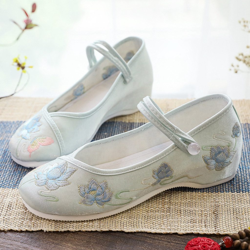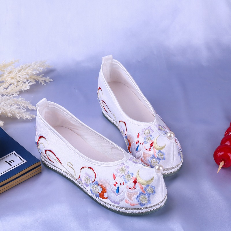 在庫一掃漢服靴5cmハイヒール女性靴オリジナル民族風古風丸頭刺繍布靴学生代理代理