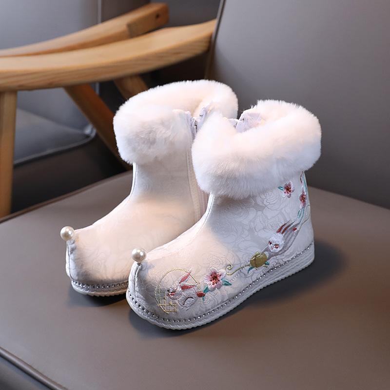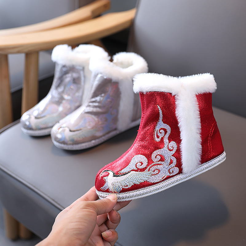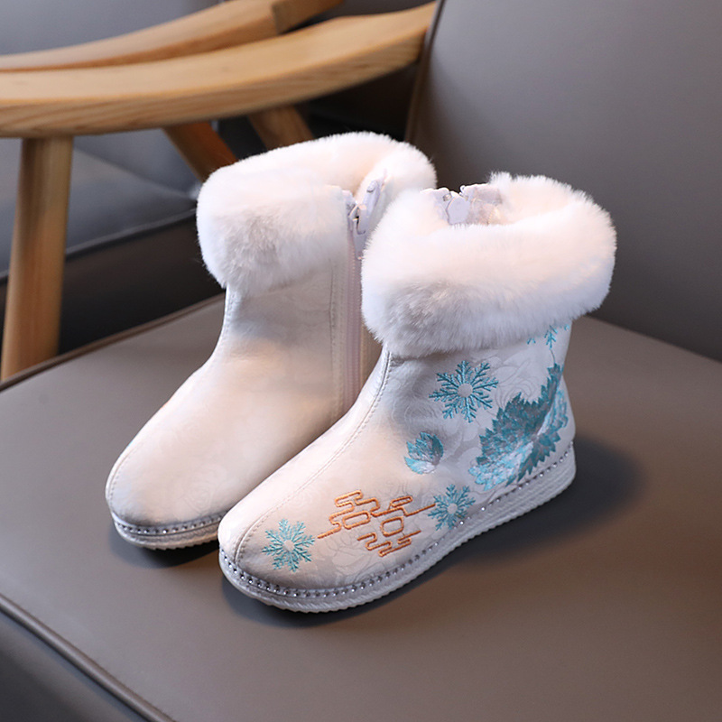 漢服の靴の女の子の在庫一掃の時代のショートブーツ2021の新型の子供の冬の刺繍の靴の厚い滑り止めの雪の靴