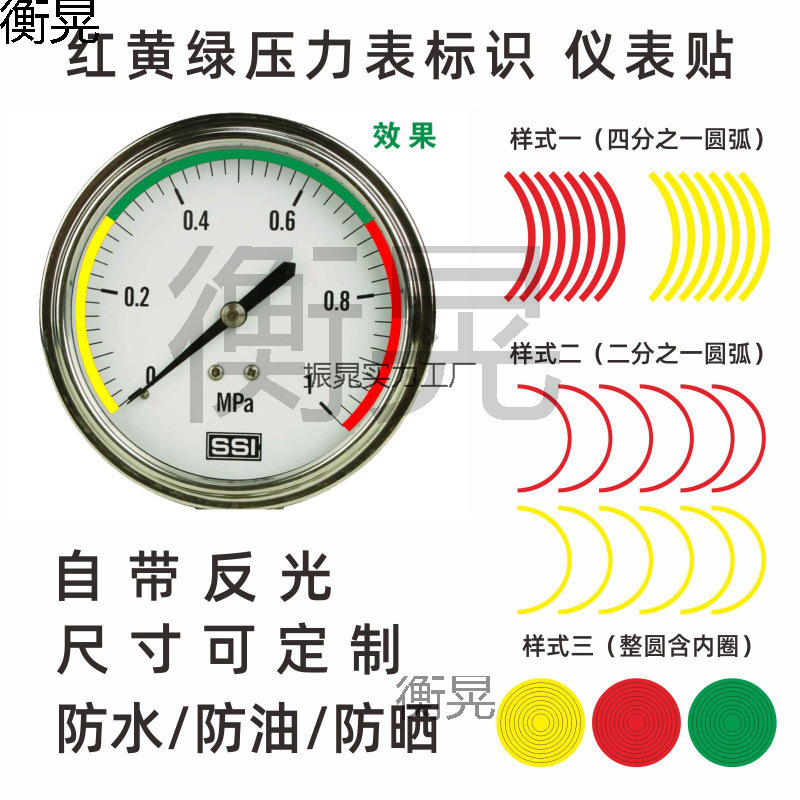 圧力計ロゴ 圧力計三色ロゴステッカー 圧力計ラベル 計器点検ロゴ 計器表示ロゴ
