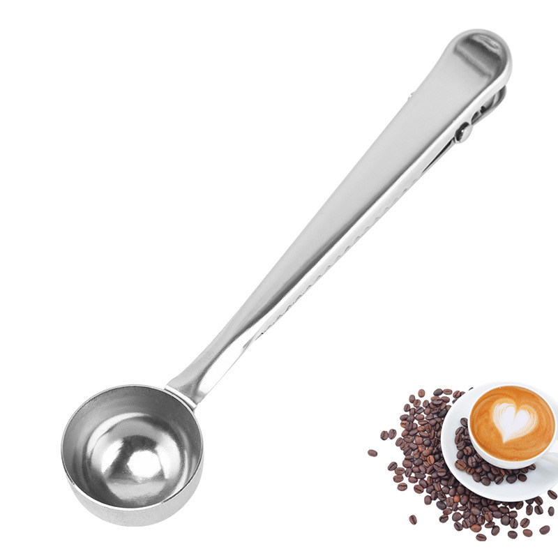 メーカー卸売りスプーンステンレスコーヒースプーンクリップ付きキッチンガジェットシールクリップ粉ミルク計量スプーン