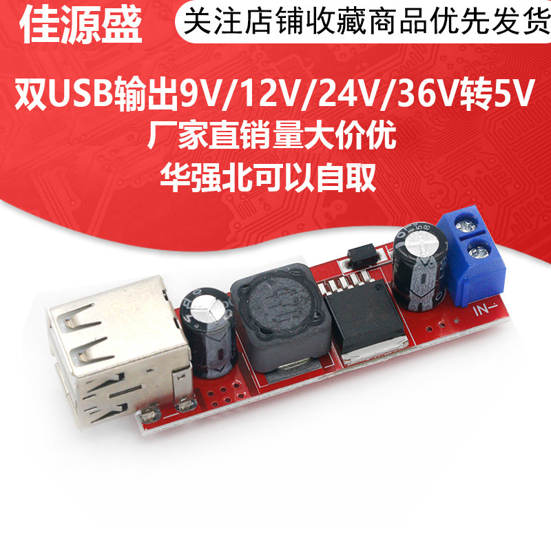 デュアルUSB出力9V/12V/24V/36V回転5V dc-dc 3a降圧安定電源モジュール車載充電