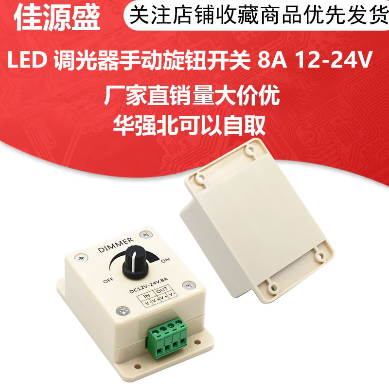 LED調光器手動つまみスイッチPWM単色ランプストリップコントローラ単路8a低圧12-24V