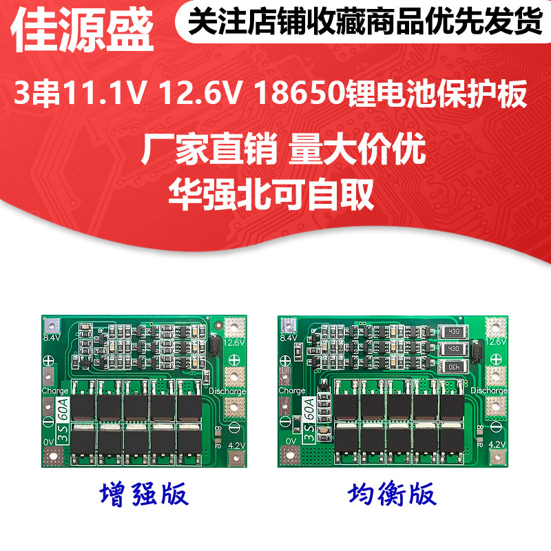 3ストリング11.1V 12.6v 18650リチウム電池保護板強化版均衡版60A電流ポート