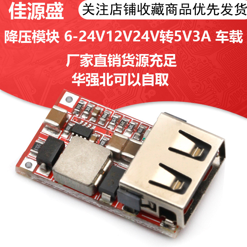 効率97.5% DC-DC降圧モジュール6-24v 12v 24v 24v 3a車載USB携帯電話充電器