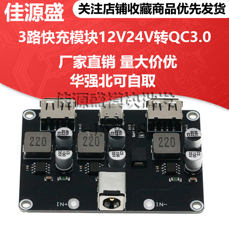 3路急速充電モジュール12V24V回転QC3.0急速充電TYPE-C USB携帯電話充電板急速充電降圧モジュール
