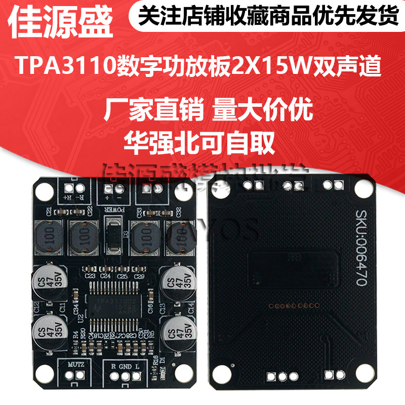 TPA3110デジタル功放板2x15wダブルチャンネルD級ステレオデジタルアンプモジュール静音インターフェース付き