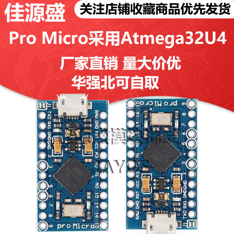 Pro MicroはAtmega32U4を使用し、独自のUSBアップデートプログラムを搭載した5V/16Mマイクロコントローラ開発ボードです。