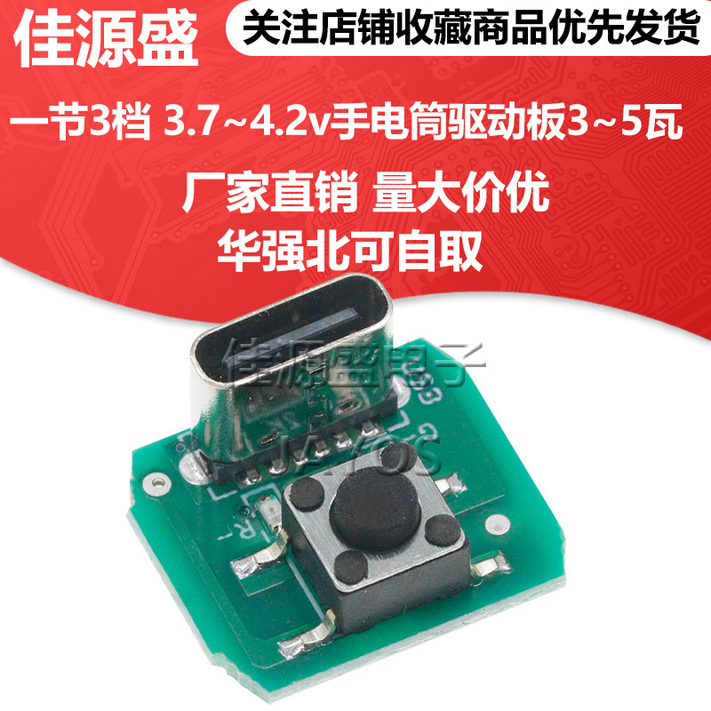 1本の電池3.7 ~ 4.2v懐中電灯駆動板3 ~ 5wled汎用typec充電口3速調光