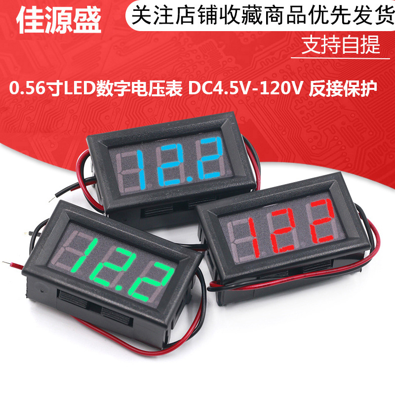 2線DC5V-120V直流デジタル電圧計デジタル電圧表頭電気自動車表反接防止0.56