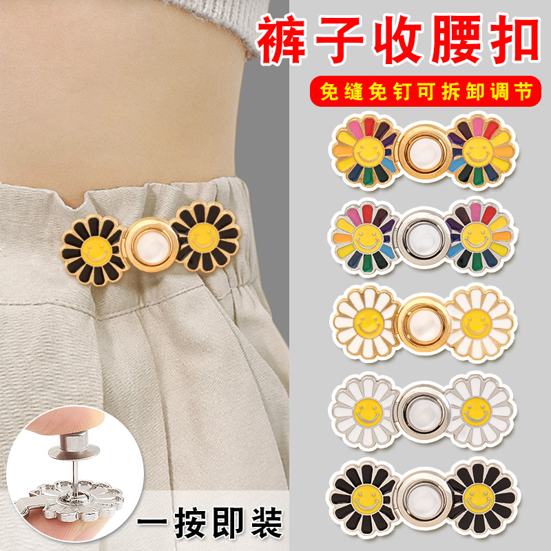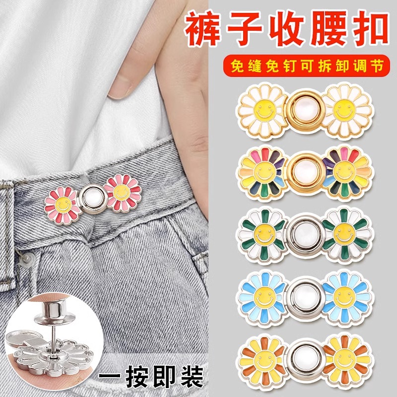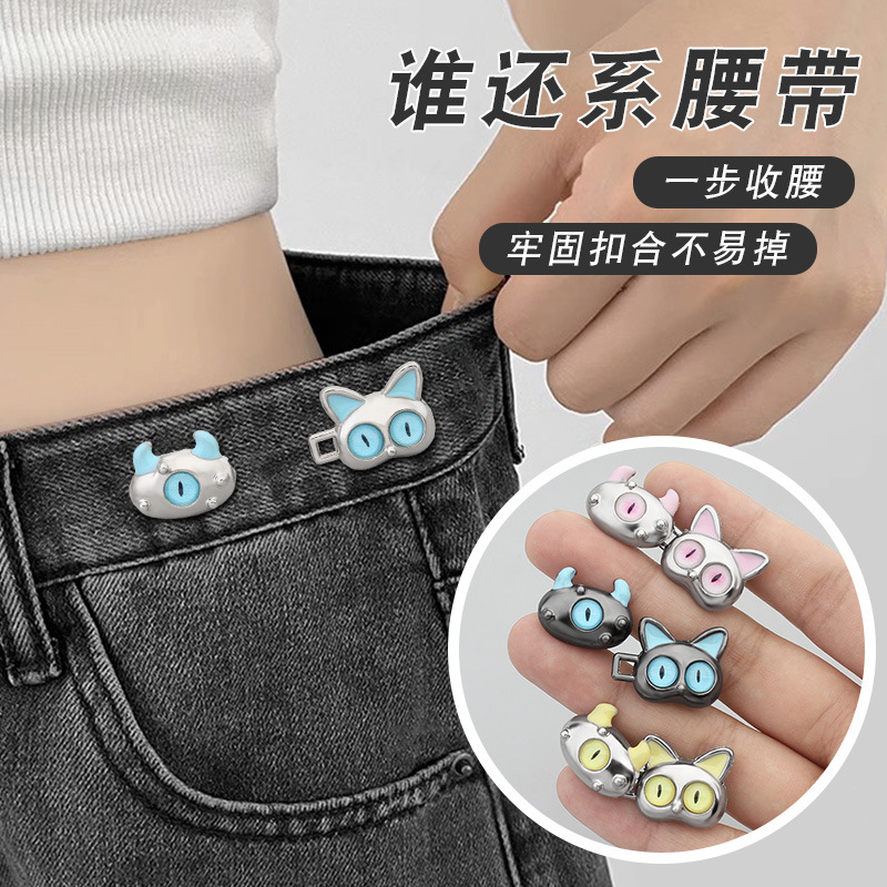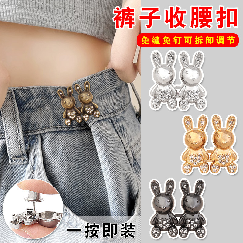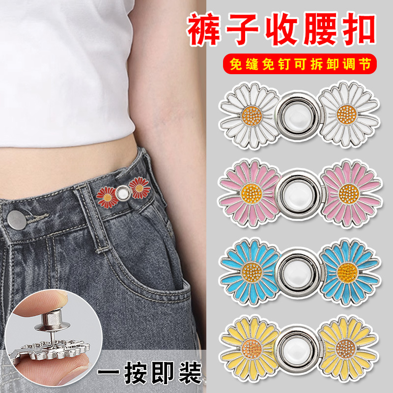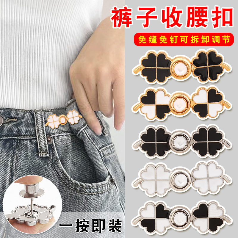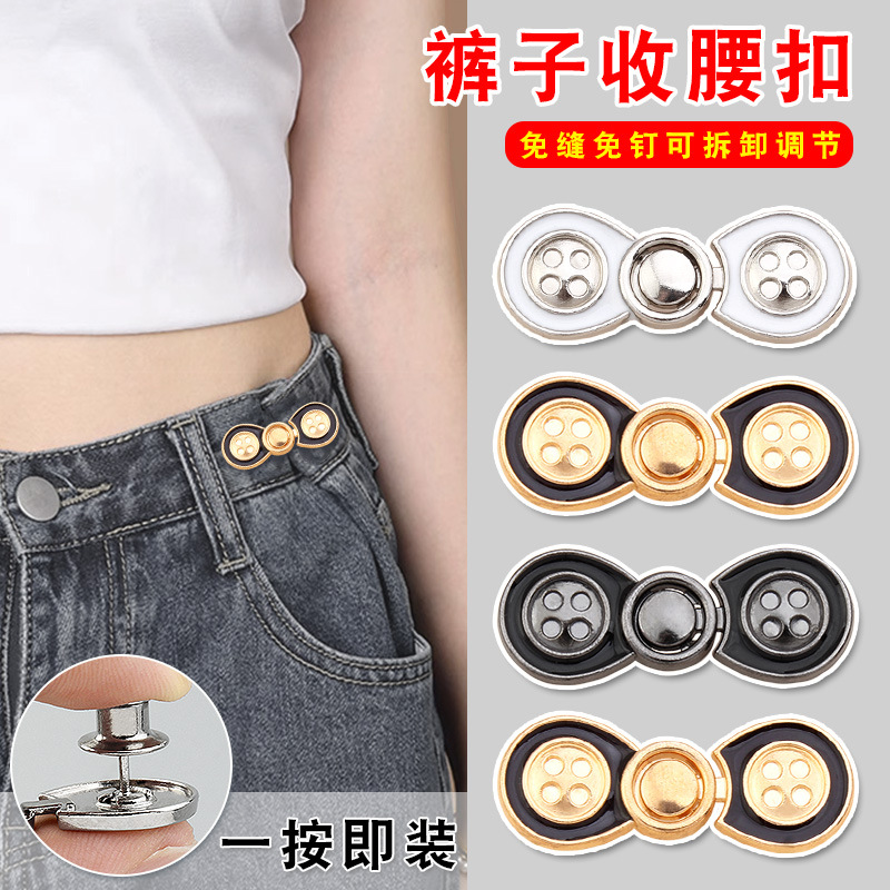 ズボンは腰を収めてボタンのジーパンを縮めて固定のズボンのウエストを縮小します。