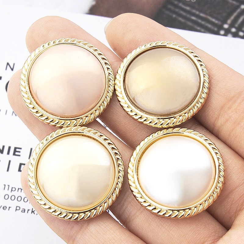 コートのボタンのパジャマの毛の風の服の女性の円形の金属の金色の辺の真珠の小さい香の風の上着は大きいボタンを飾ります。