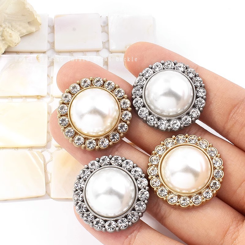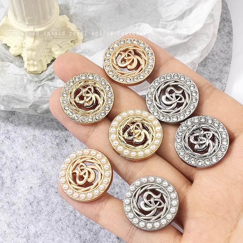 高級コートのボタンのラシャのコートのセーターの女性の真珠の小さい香りの風はダイヤモンドの金色の銀色の装飾のボタンの部品を入れます。