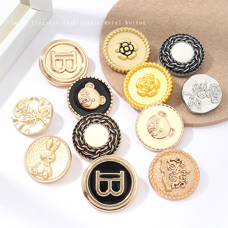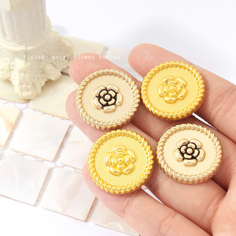 金属ボタン両面カシミヤコート上着高級レトロ小香風金色小花大ボタン服補助材料