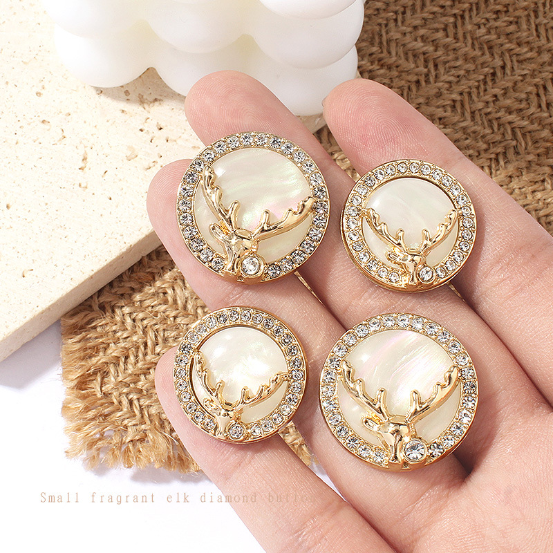 服のボタンの毛はコートの上着の女性の小さい香風のダイヤモンドはドリルのヘラジカの大きいサイズの装飾のボタンの部品を持ちます。