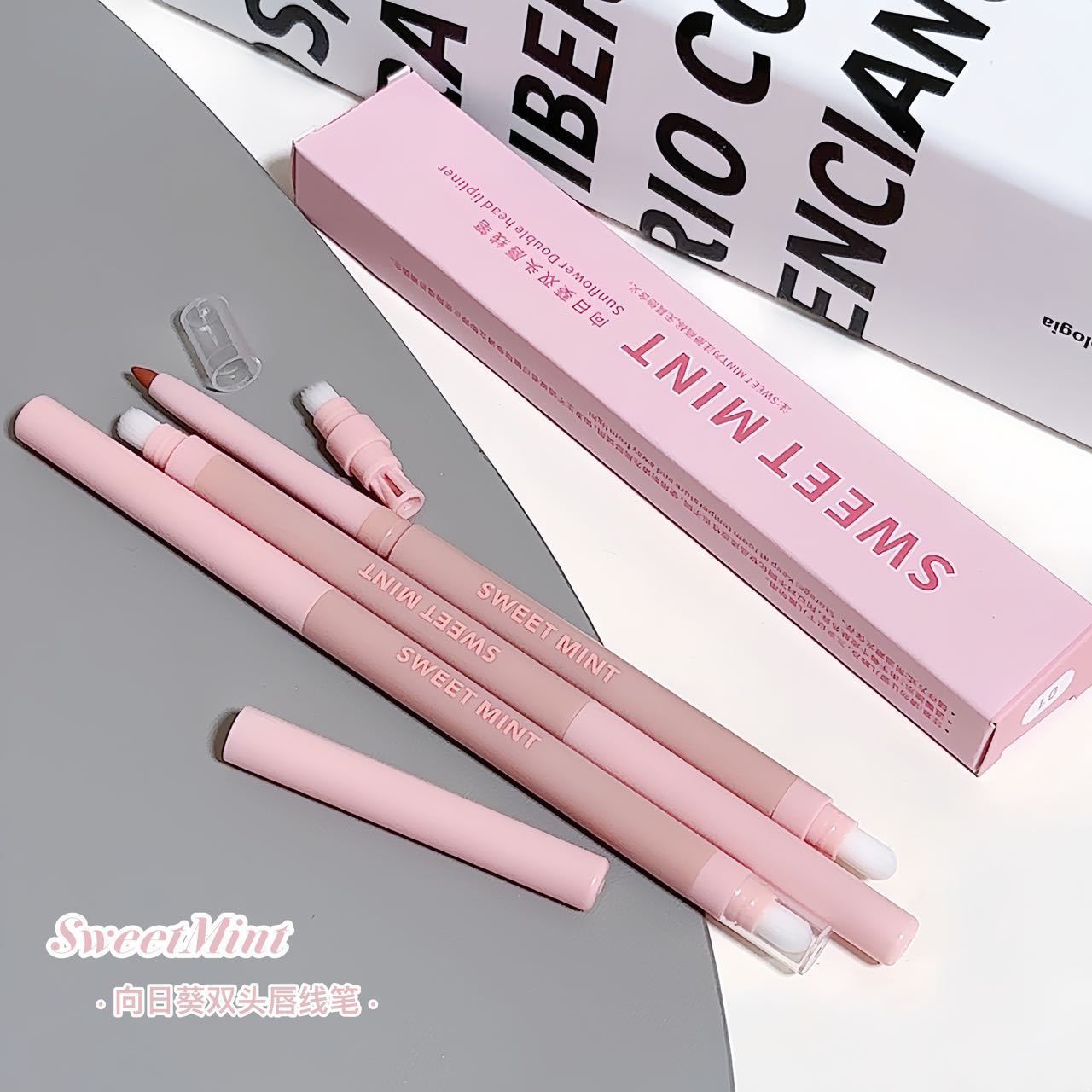 スイートミント ヒマワリ ダブルヘッド リップ ライナーは唇の形を輪郭づけし、滑らかなマット マットな感触で 3 つの用途を実現します。