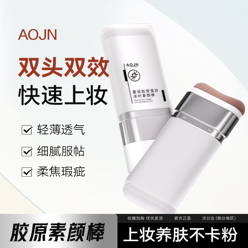 AOJN 再構築コラーゲン アンチタイム メイクアップ スティックは、軽くて薄いコンシーラーで、パウダーが付着せず、自然で偽物の白いメイクアップ クリームです。