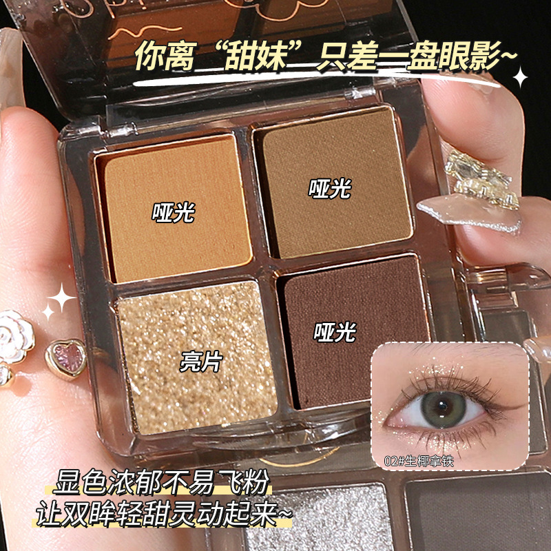 茗希芝四色アイシャドーパウダーブラウン大地色スモークディスクマットビーズフラッシュ携帯新米