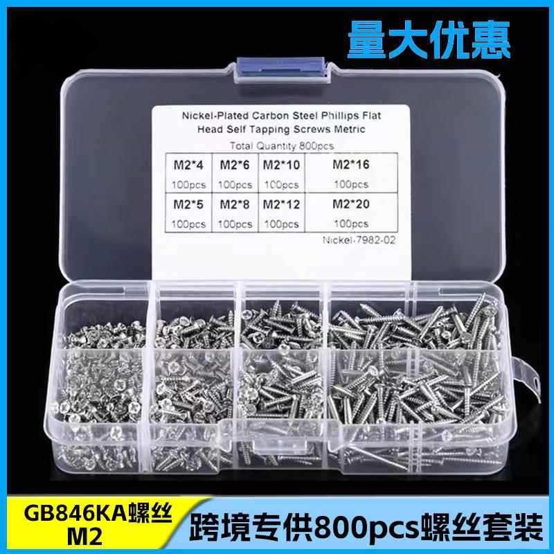 800個入りM2皿頭タッピングネジ炭素鋼銀色十字皿頭タッピングネジ組み合わせセットネジ