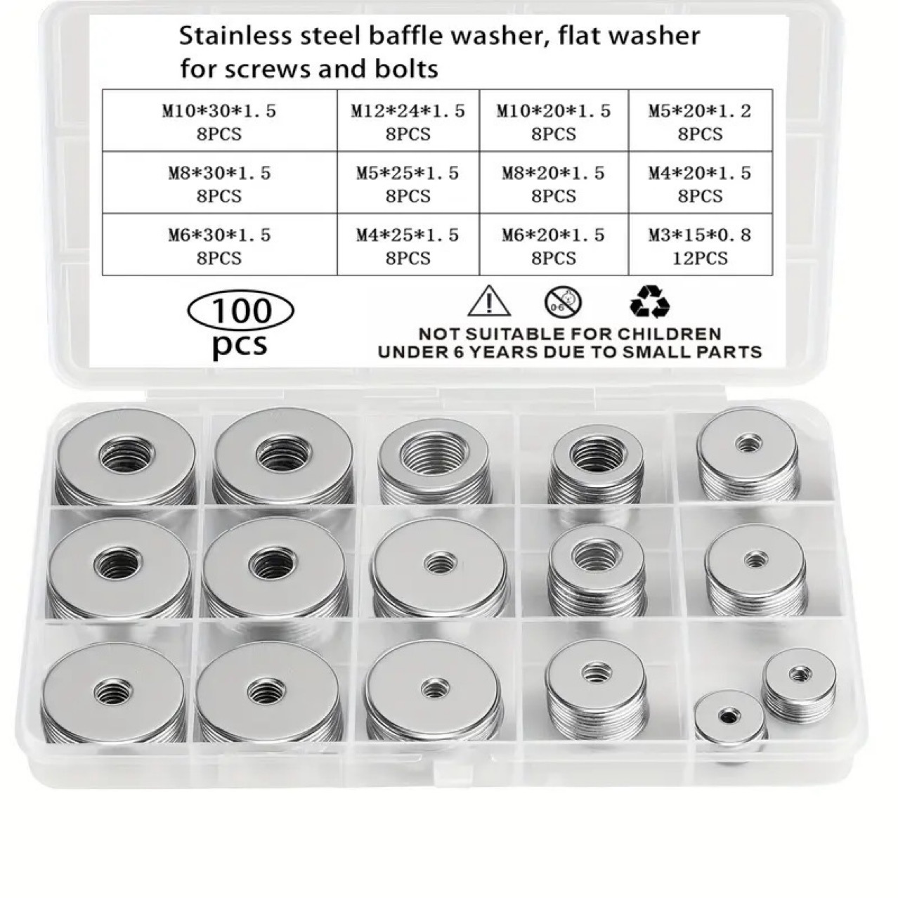 クロスボーダー直接販売100本箱入りステンレス金属円形スペーサー高強度増厚大型平座金