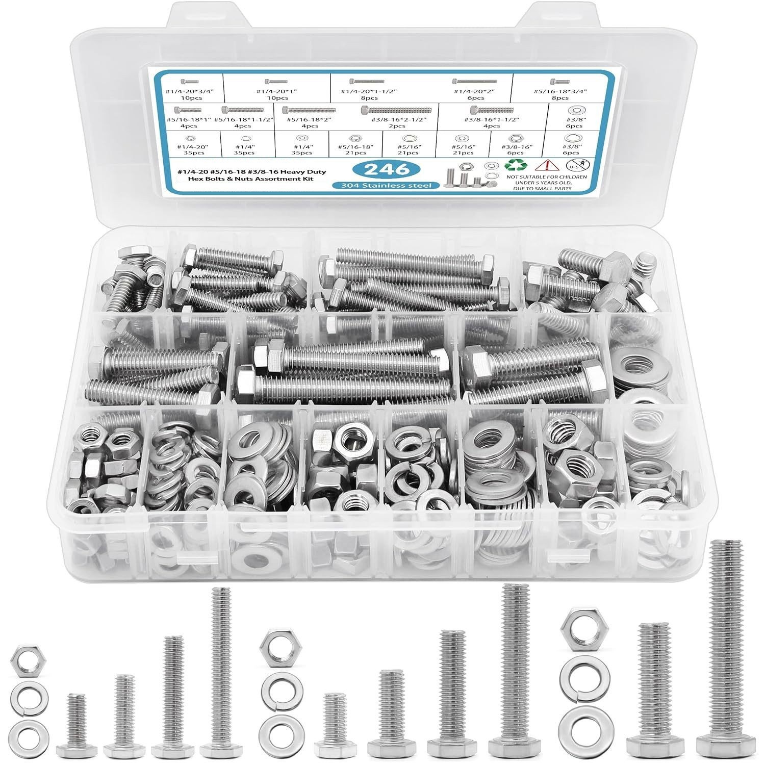 ラベル246PCS美標304ステンレス外六角ねじセット外六角ボルトナットセット