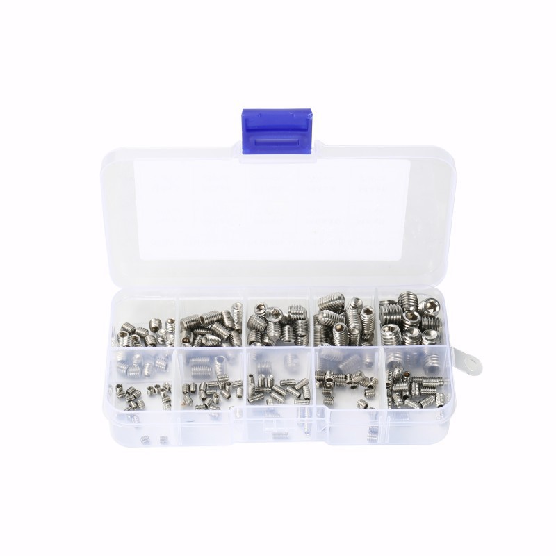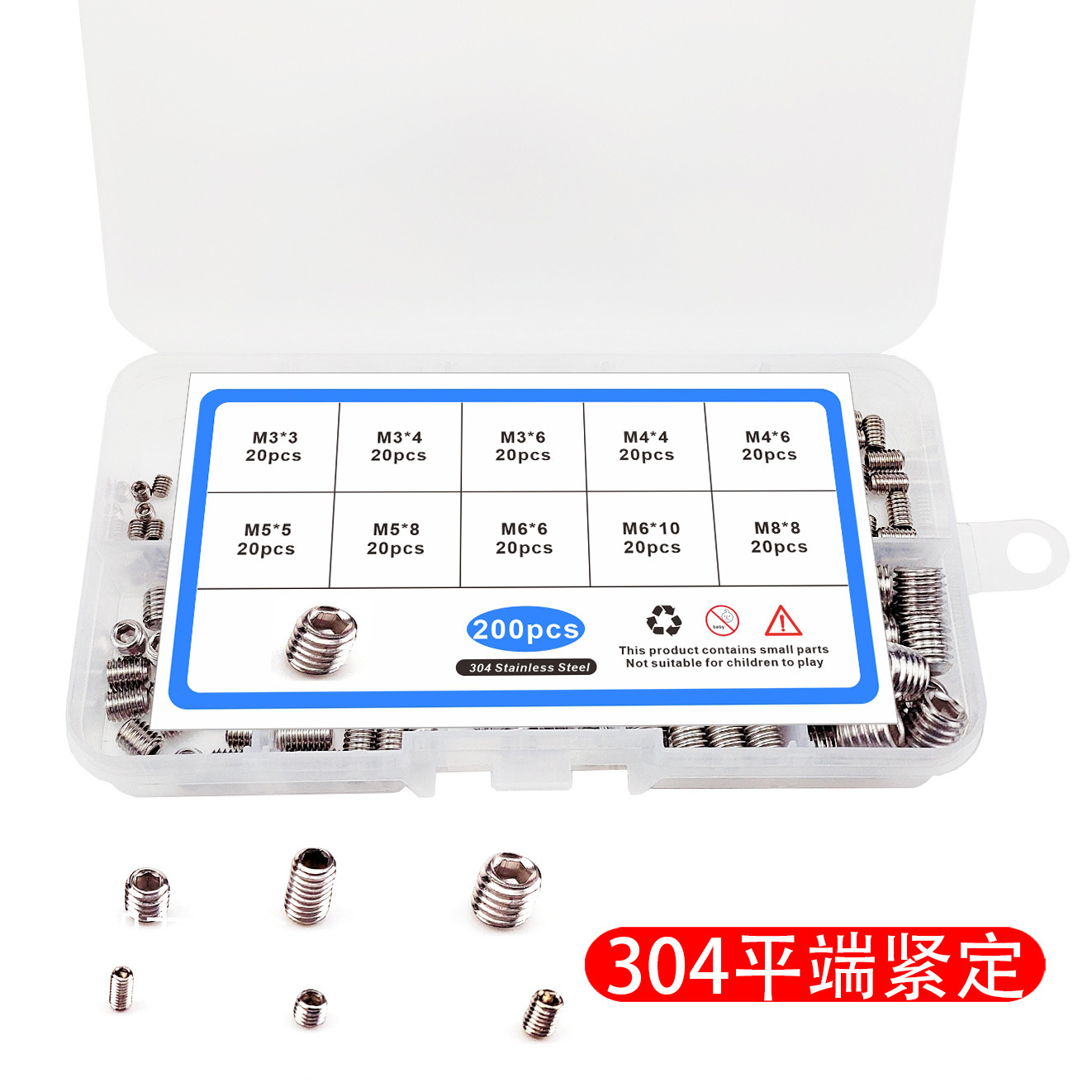 箱入り200pcsステンレス304 DIN914内六角錐端締めねじセットセットM3-M8