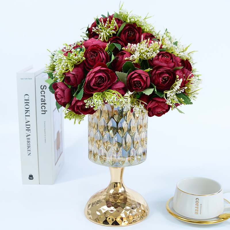 貴妃のバラの花の高級な花の壁の装飾は造花のかんざしの花の頭飾りの頭輪の花輪の部品を配置して花を飾ります。