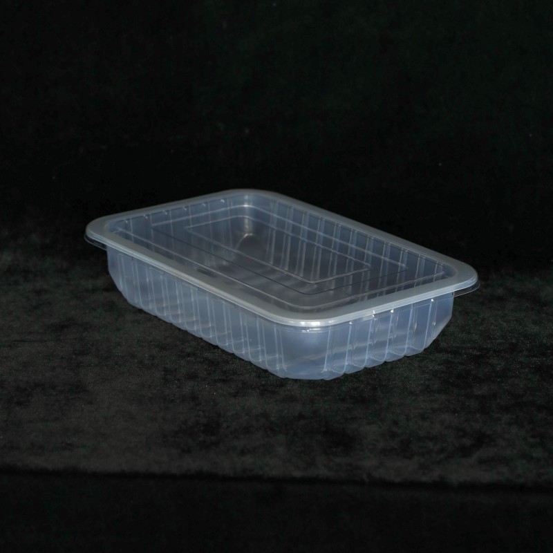 メーカー販売pp使い捨て食品プラスチック包装箱蓋付きハロゲントレイ透明プレハブ料理箱