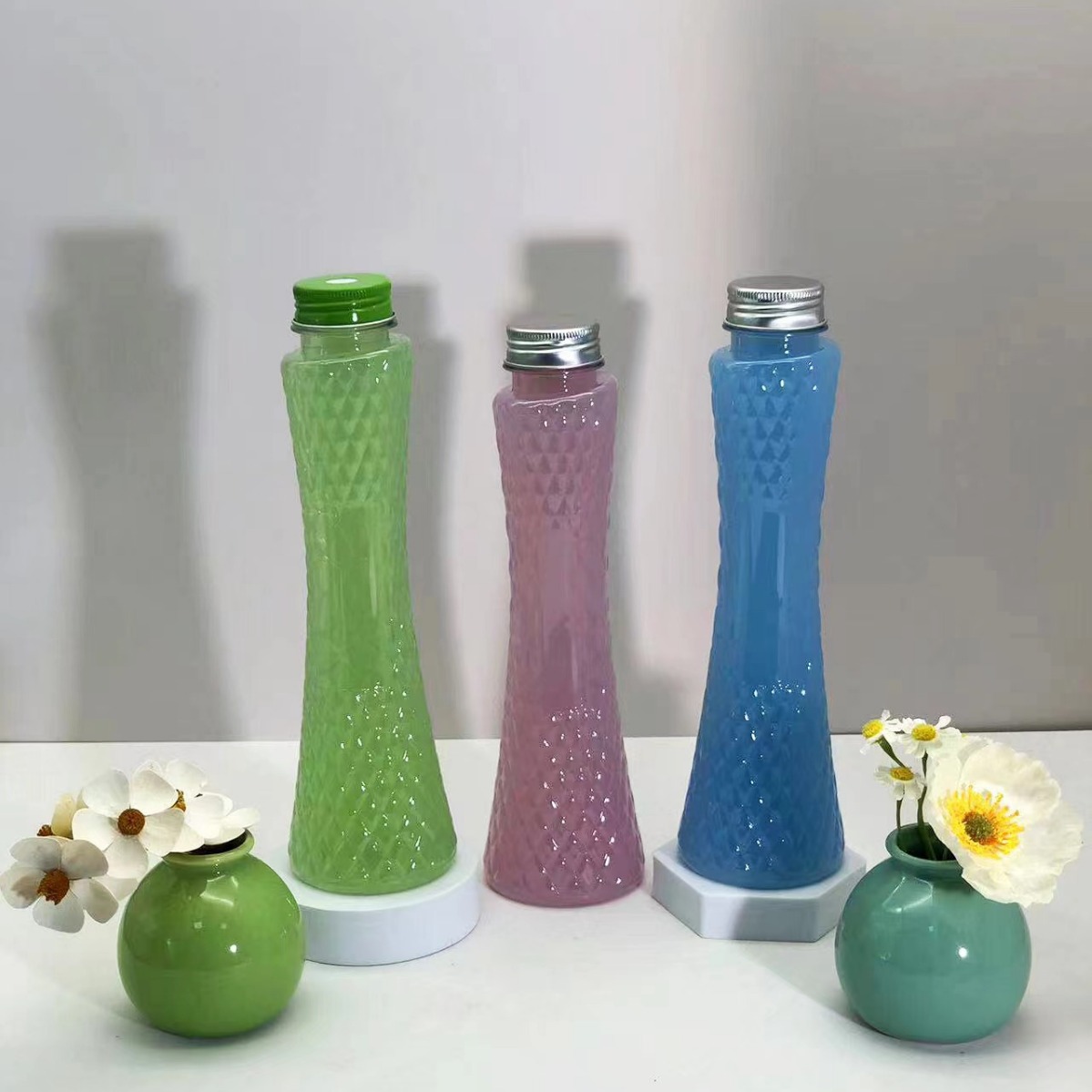 ネットの赤い飲み物のジュースの瓶の小さい腰のミルクのお茶の瓶のアルミの蓋の出前のミルクのお茶の杯の新鮮なジュースのペットボトルのミルクの瓶