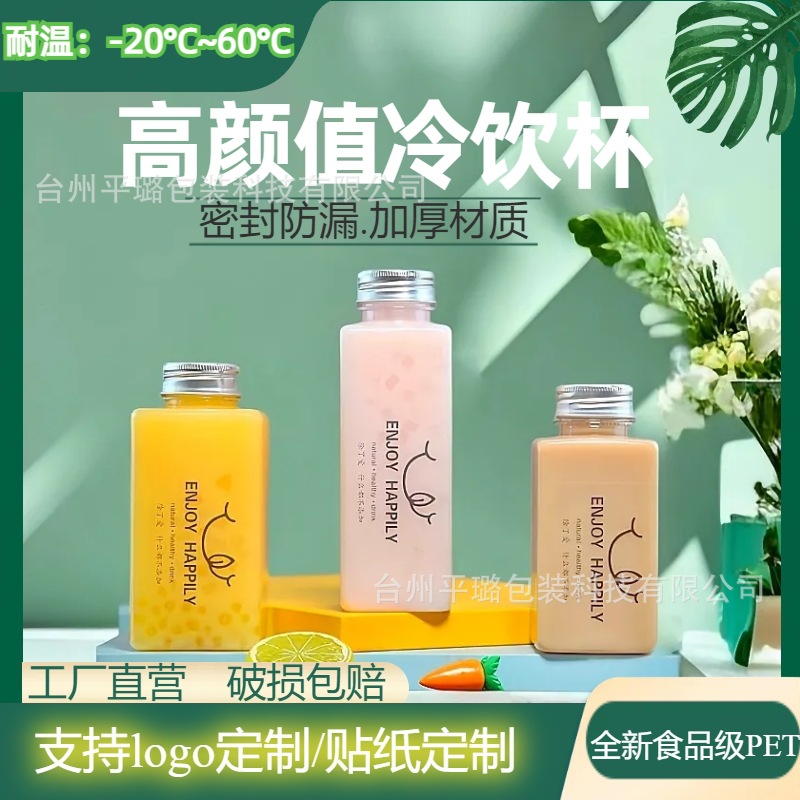 メーカー直供プラスチック高透明増厚角瓶PET食品級包装カップ使い捨てネット赤哺乳茶瓶