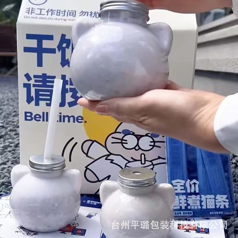 卸売使い捨てペット飲料ボトルかわいい猫ミルクティーボトル 350 ミリリットル/500 ミリリットルミルクティーカッププラスチックカップストラップ