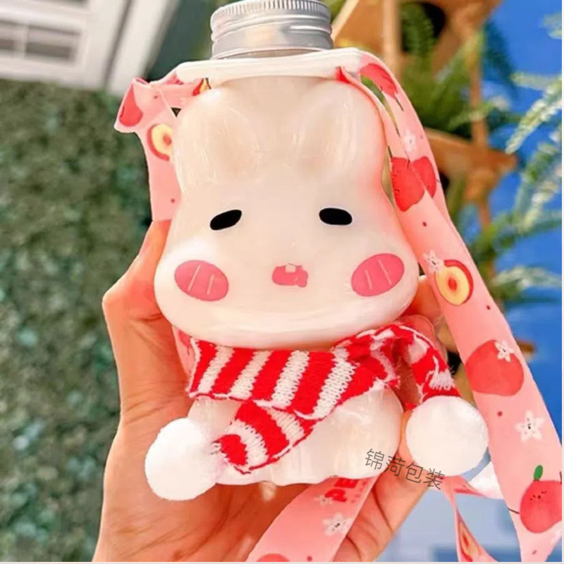 クリエイティブ使い捨て飲料瓶ジュースカップぼんやりウサギ楊枝甘露ミルクティーpetミルクティーカッププラスチックカップ