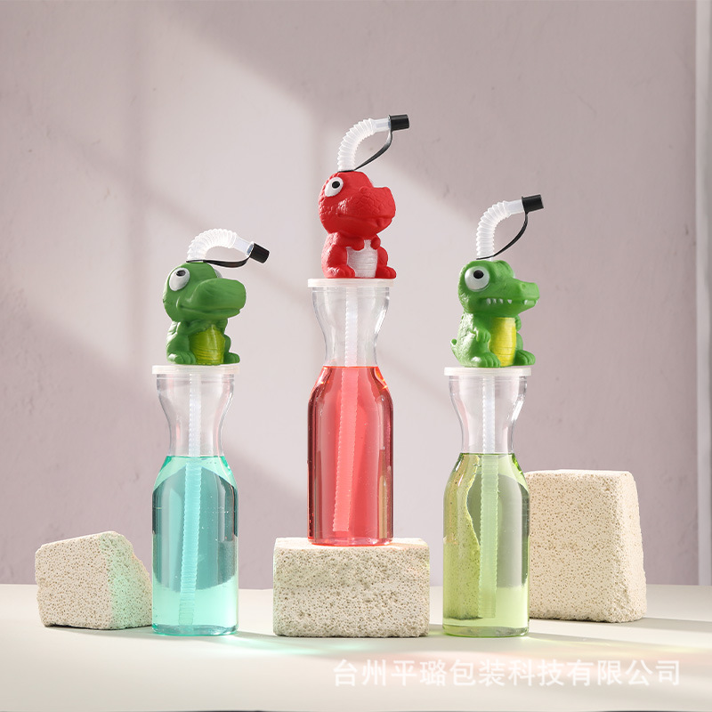新しいアイデア使い捨てミルクティー冷たい飲み物カッププラスチックストローカップ学生pet漫画子供ジュース飲料カップ