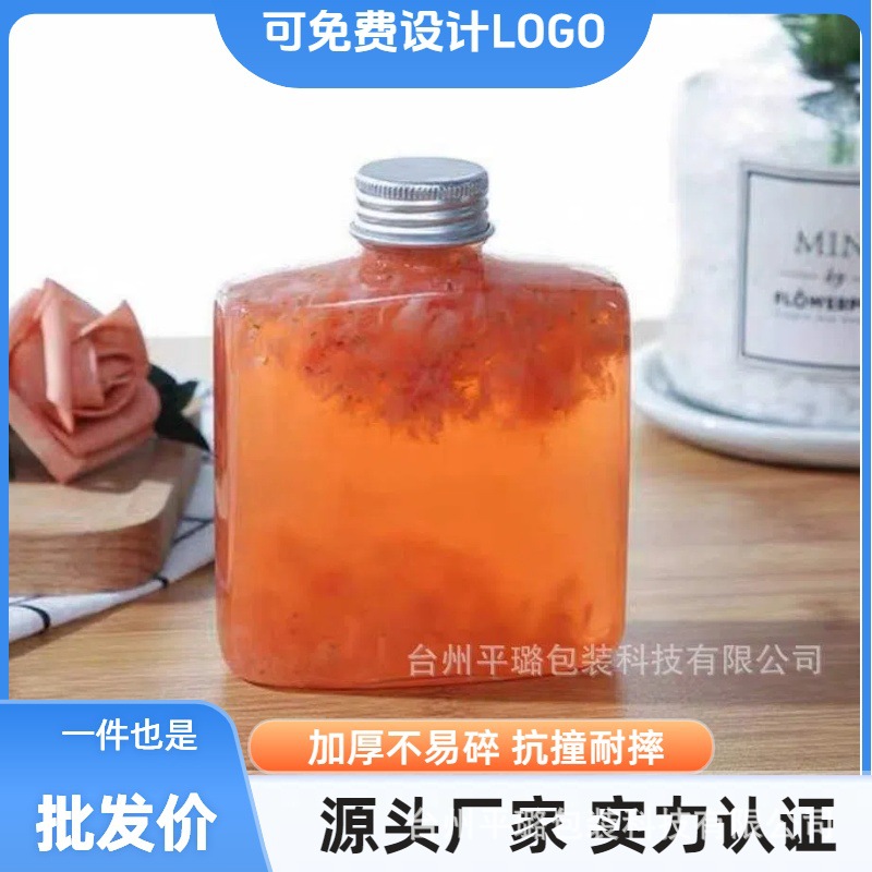 250ml透明フラットボトルジュースボトル使い捨てPETプラスチックミルクティーボトル飲料ボトルpetカップ