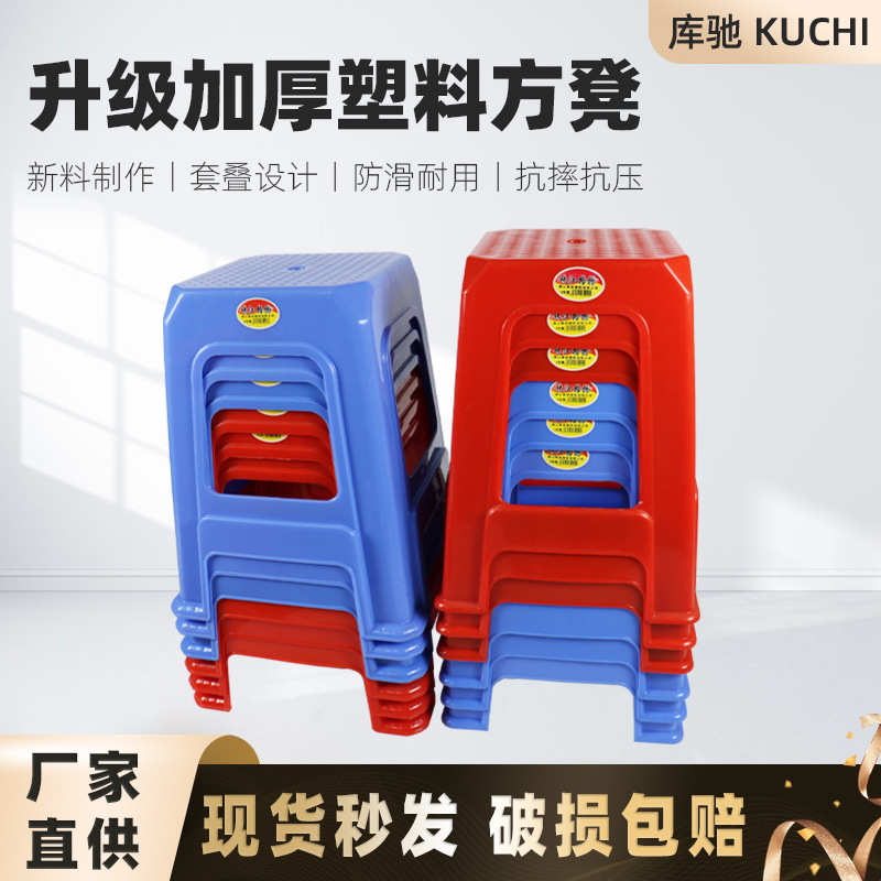プラスチック製の厚い椅子、宴会用、落下防止、赤いゴム、工場、夜市、屋台、家庭用、ハイフットスクエアスツール、高さのある椅子