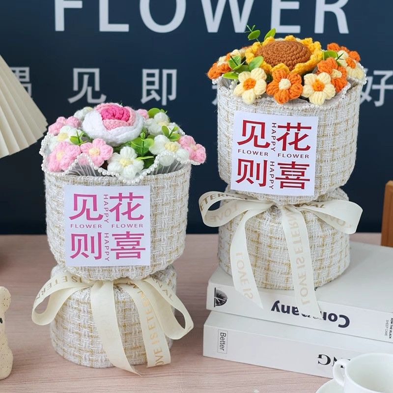 完成品のニットひまわり毛糸小花束、卒業祝い、母の日ギフト、520バレンタインデー、ホリデーギフトボックス