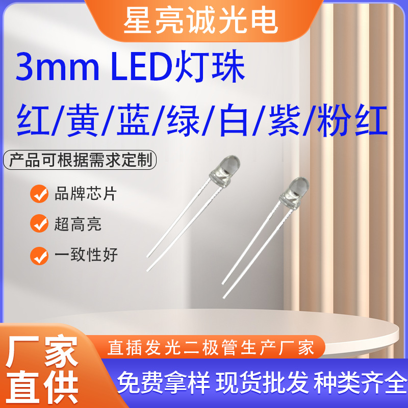 f3/mm 丸頭 LED ランプビーズ赤色光黄色光青色光緑色光白色光プラグイン発光ダイオードインジケータ