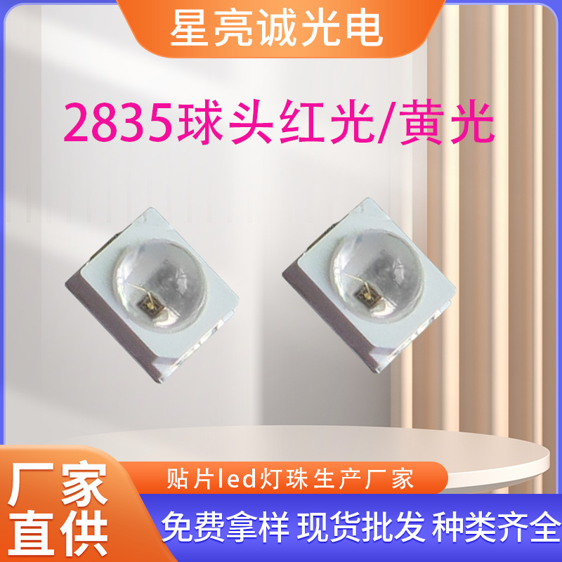 供給2835球面赤色パッチled電球2835ボールヘッドレンズ付き凸ヘッドled赤色光小角度