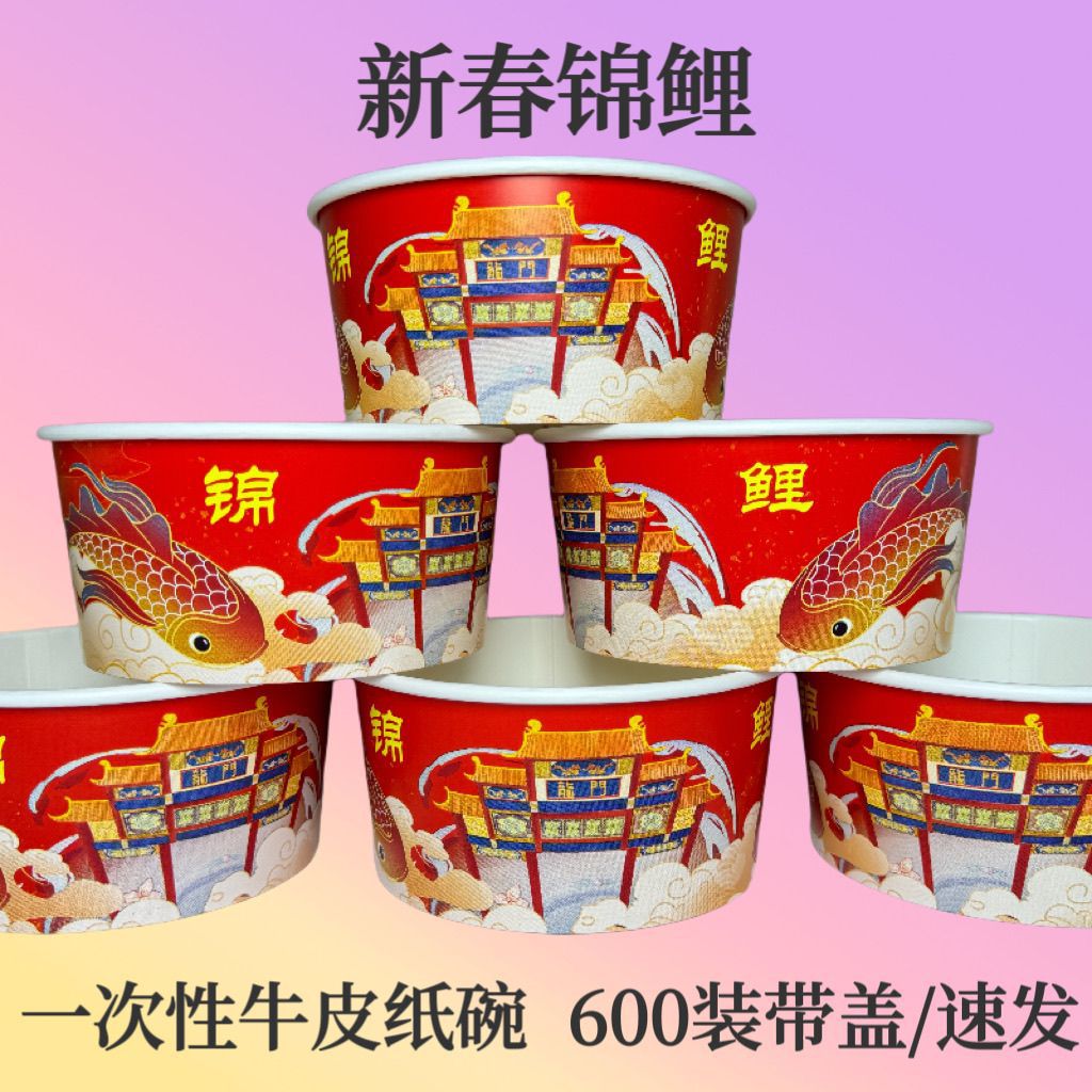 丸い弁当箱クラフト紙蓋付き弁当箱果物使い捨て販売国潮包装厚紙碗サラダ