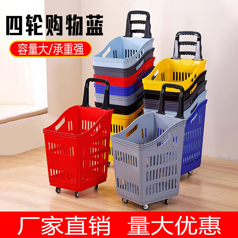 かごのレバーの手提げかごのプラスチックのプーリのスーパーの買い物かごのバスケットは野菜のスーパーのショッピングカートのかごを買って買い物します。