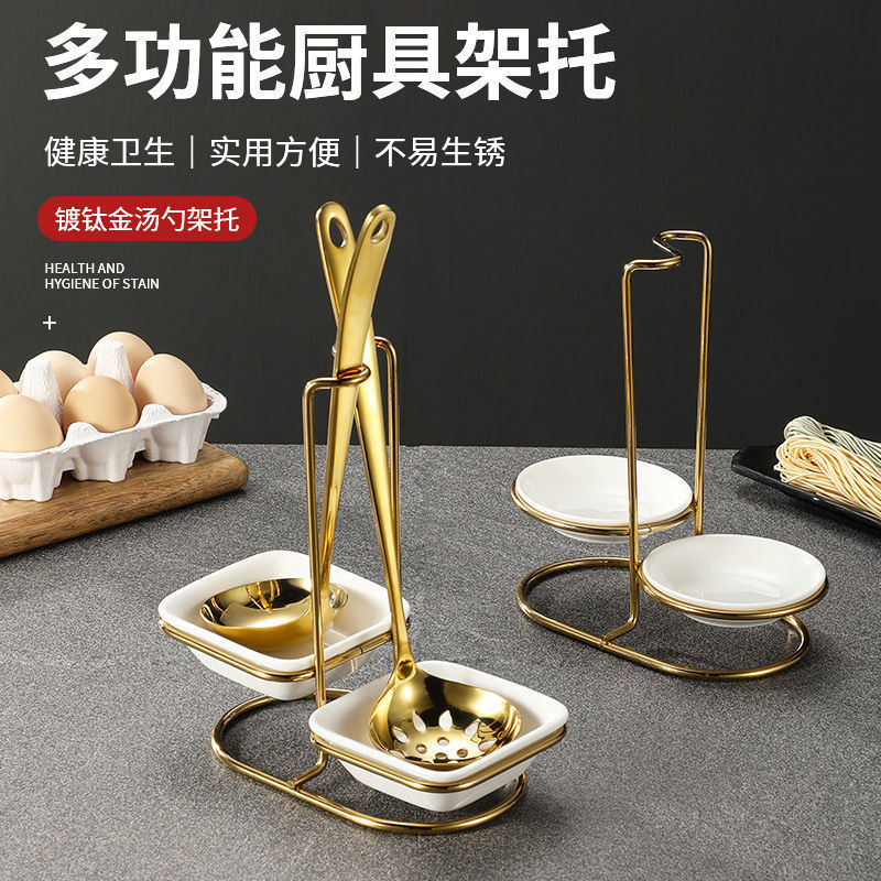 ハイエンドの商業用厚みのあるステンレス鋼チタンゴールドセラミック鍋スプーンホルダーセットスープザル食器収納ラック