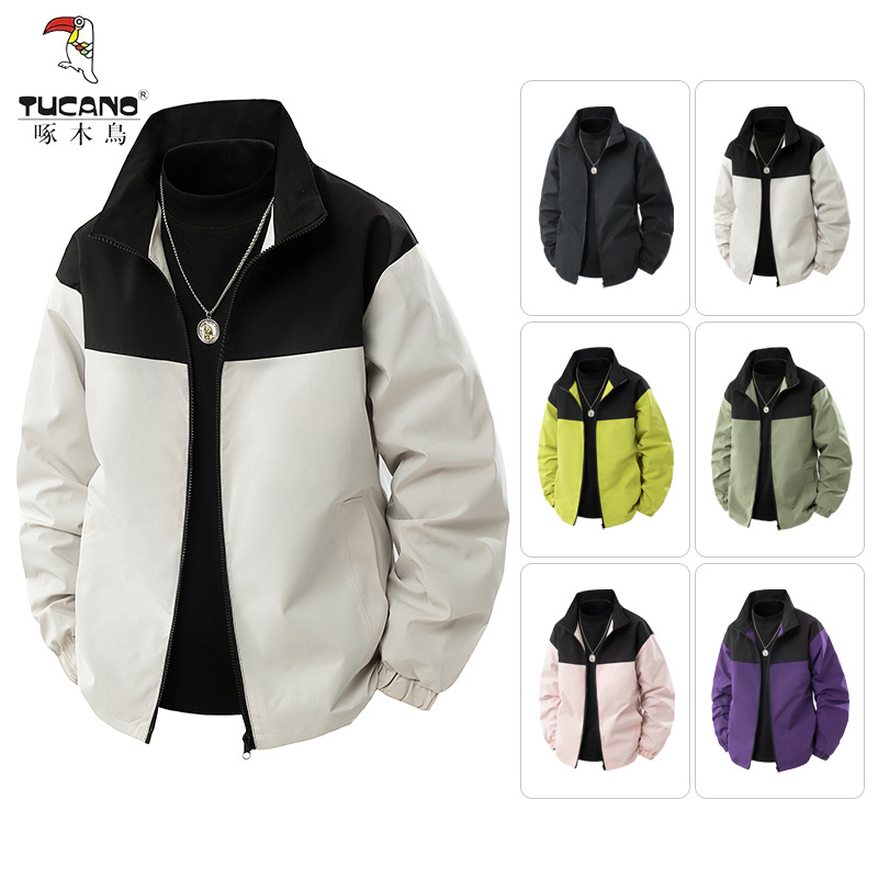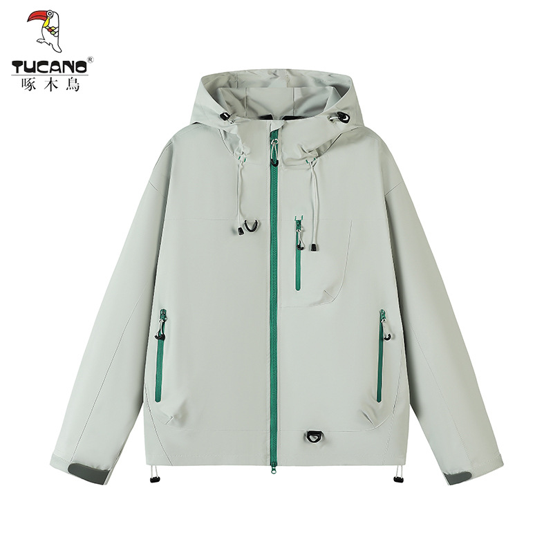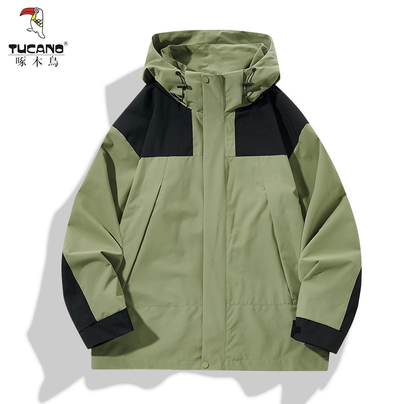 啄木鸟春秋新款防风防水冲锋衣男外套拼色登山服百搭休闲工装夹克