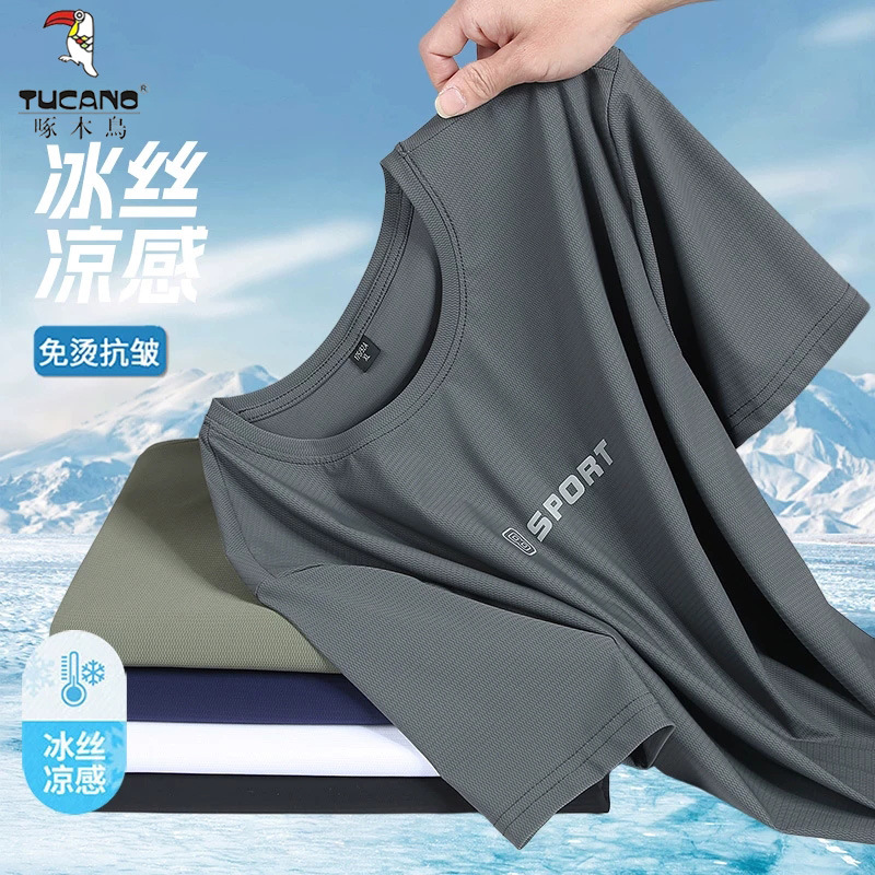 ウッドペッカー アイスシルク 通気性 涼しい 半袖 Tシャツ メンズ 夏 薄手 スポーツ レジャー シワ防止 速乾性 スウェットシャツ
