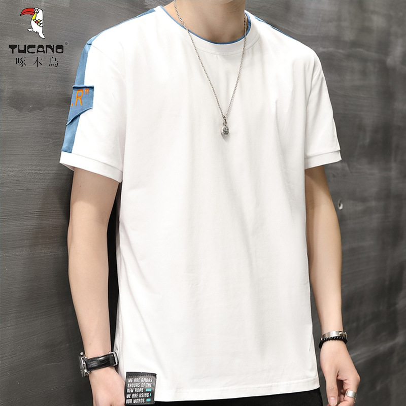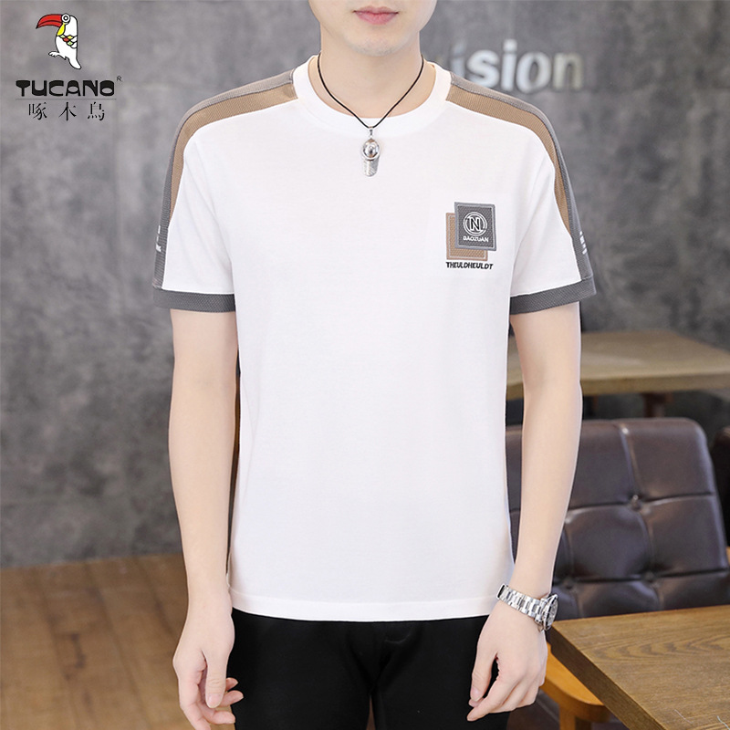 ウッドペッカー純綿メンズ半袖 Tシャツ夏のトレンド薄い新しいメンズスポーツカジュアル快適なトップス男性用