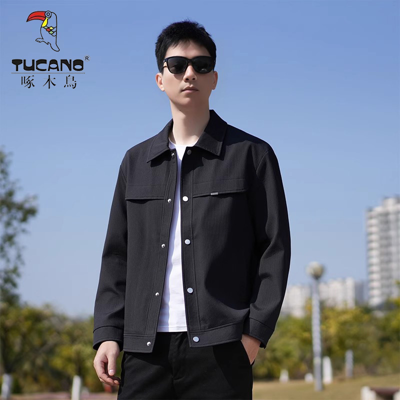 キツツキの筋肉感のストライプの襟のジャケットの男性の2024新型の軽いビジネスのハイエンドのコートの男性の春秋の上着