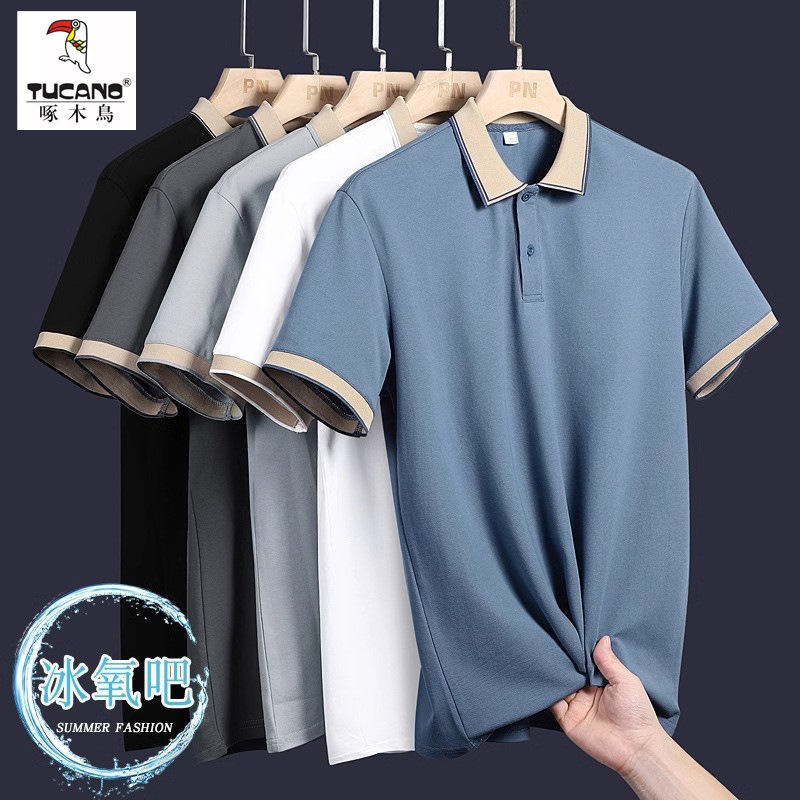 キツツキアイス半袖tシャツメンズポロシャツ夏シャツ速乾折り襟カジュアル半袖中年お父さん